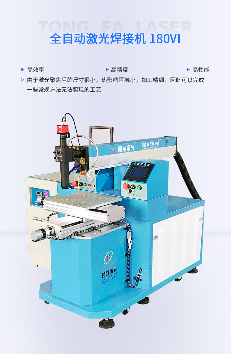 通發(fā)激光TFL-180VI小五金全自動(dòng)激光焊接機(jī),廣泛適用手機(jī)五金激光焊接,不銹鋼螺柱激光焊接,各種小五金的激光焊接加工。采用精密運(yùn)動(dòng)控制器和精密XY工作臺(tái),可實(shí)現(xiàn)大多數(shù)0.5mm以內(nèi)料厚五金產(chǎn)品的二維平面焊接。效率高,性能穩(wěn)定,性價(jià)比高。